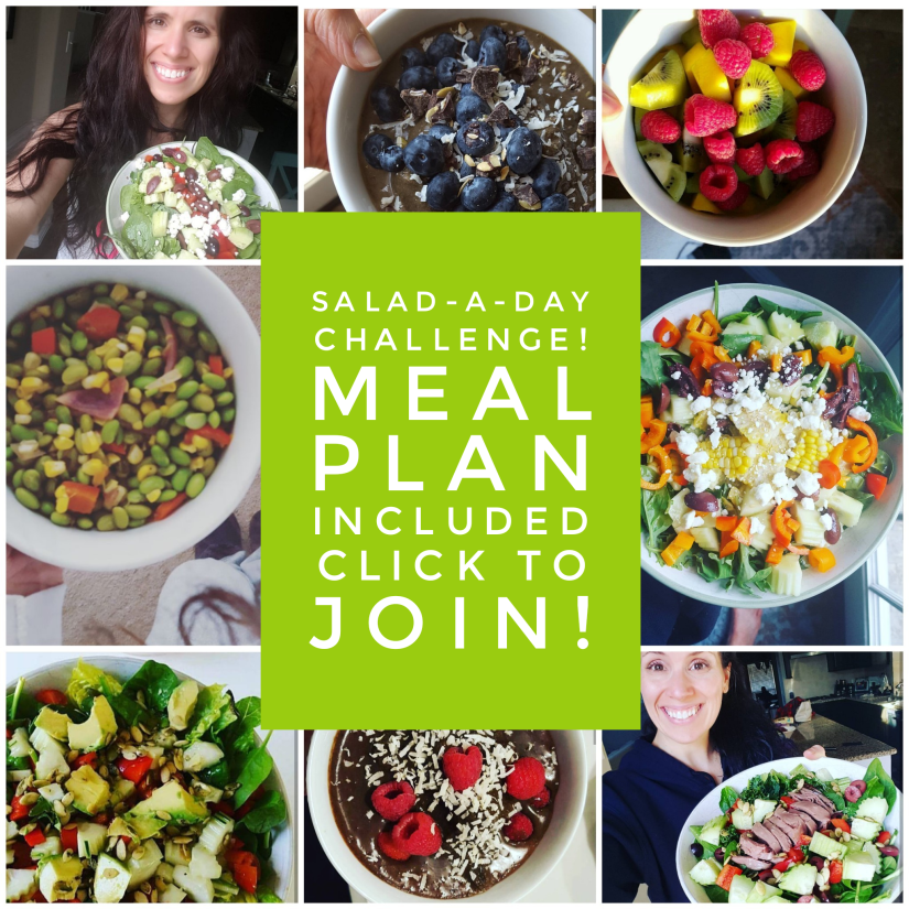 I will share some of my personal faves as well as some new and different fruit & veggie salad ideas each day, plus a meal plan with some clean eating ideas if ya like?!