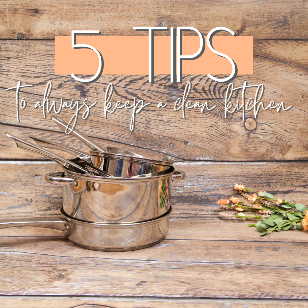 It’s my five super simple but super effective ways to keep your kitchen CLEAN! I know right, sounds impossible. Especially when you’re cooking at home and trying to eat healthier. But it IS possible. I’ve been sharing these tips inside my Facebook community (click here to join us) all month long, and now gonna let you in on it!