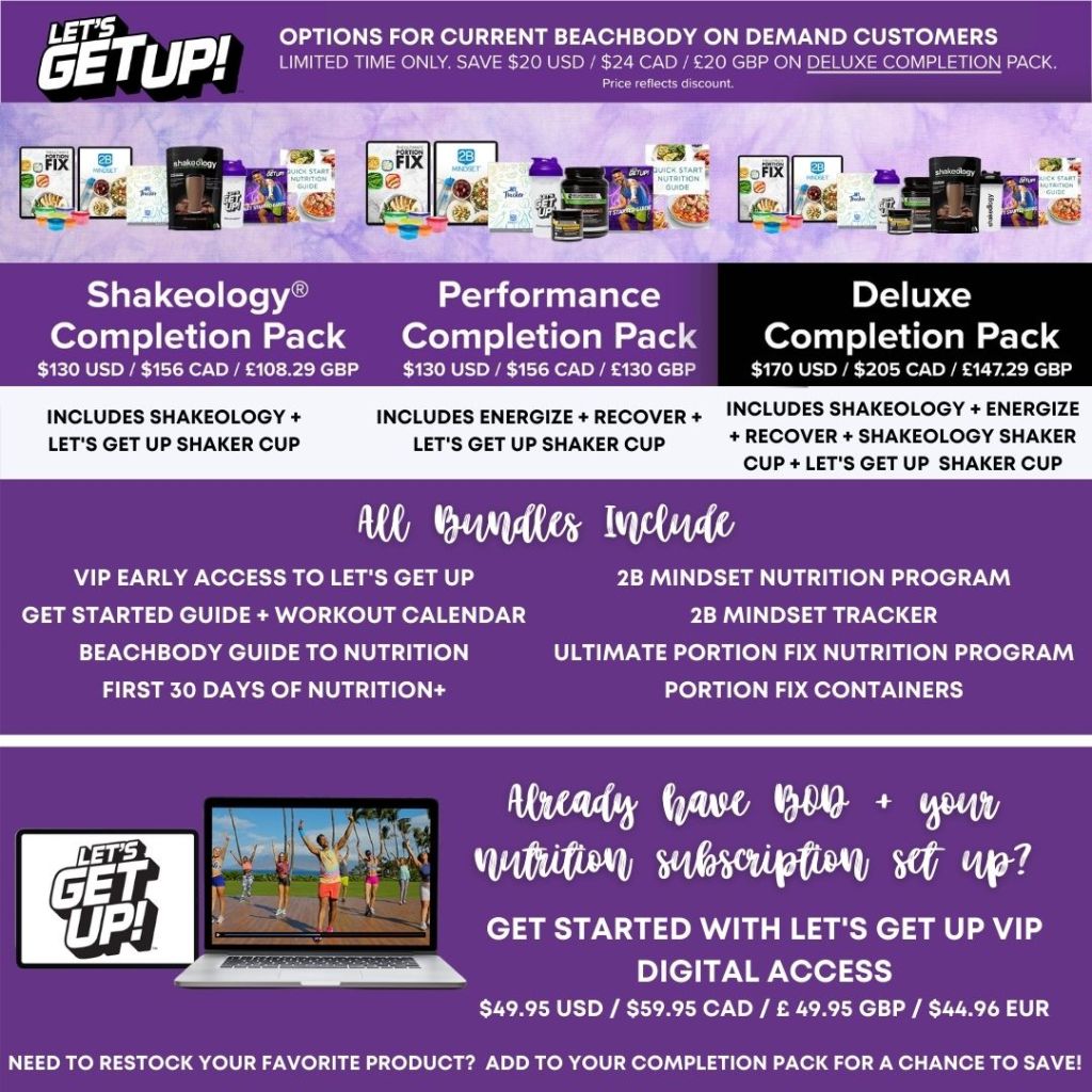 - Annual Beachbody on Demand Membership + VIP Early Access to Let’s Get Up