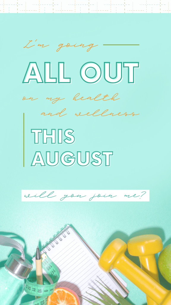 This is a fun challenge that will be totally free and hosted here on my blog (make sure to subscribe/sign up for email alerts) and on my Fitness focused social media pages on Instagram & Facebook ! It’s a MONTH long FOCUS for our fitness and our faith….. Don’t miss all the goodness! Stay connected, join in on my LIVE video chats, workouts/classes, and posts as they all play a part for ALL OUT August 😉