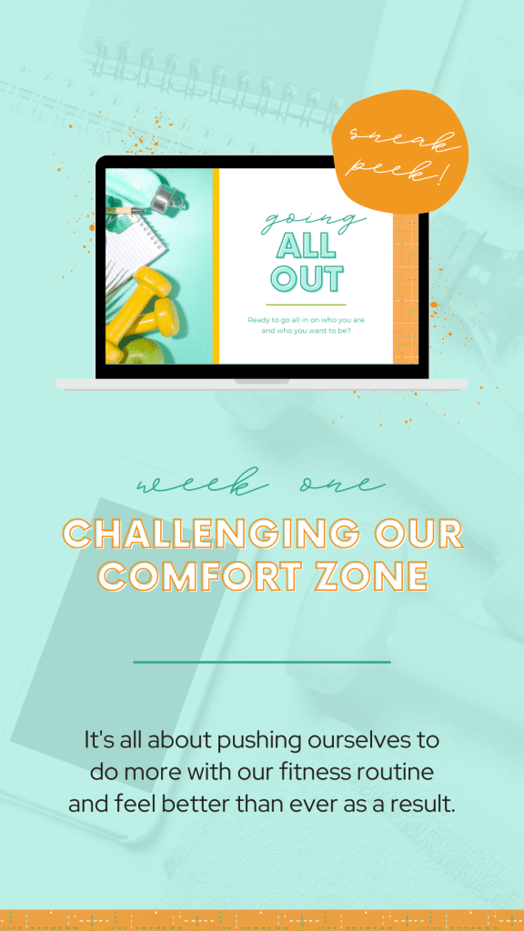 Week one is all about Challenging Our Comfort Zone by pushing ourselves to do more with our fitness routine and feel better than ever as a result. 💪