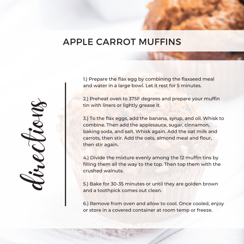 2.) Preheat oven to 375F degrees and prepare your muffin tin with liners or lightly grease it.