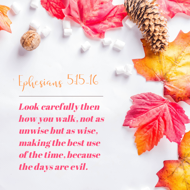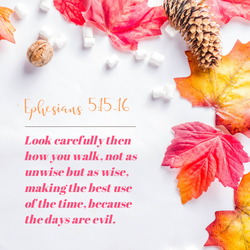 “Look carefully then how you walk, not as unwise but as wise, making the best use of the time, because the days are evil.” – Ephesians 5:15-16