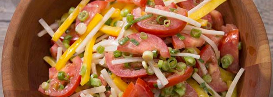 Check out this delish Summer Tomato Salad; if you can’t find daikon radish in your grocery store, swap in regular radish or watermelon radish.